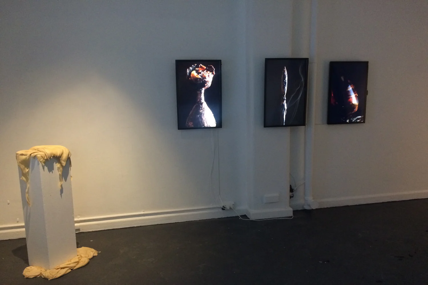 IMAGES | Hernan Lopera, Threshold, 2016, Fabric and paraffin wax | Anastasia Booth, Portrait of Scylla 2016, HD video | Britt Salt, Spatial Diffraction, 2018, hand cut vinyl | Guy Grabowsky, Disintegrated Surface, 2018, hand printed c type colour analogue photographic print, 137 x 100cm| Tessy King, Sun Room, 2016, glazed stoneware, lustre, granite, steel, turmeric dyed calico | Michele Sierra, Rasa, 2017, single channel video | Jake Treacy, My Eyes at the Moment of The Apparitions, 2018, etched mirror | Diego Ramirez, When Conquest Swallowed The Sun, 2018, HD projection, round perspex, round lightbox, vinyl, beans | Courtesy the artists.
