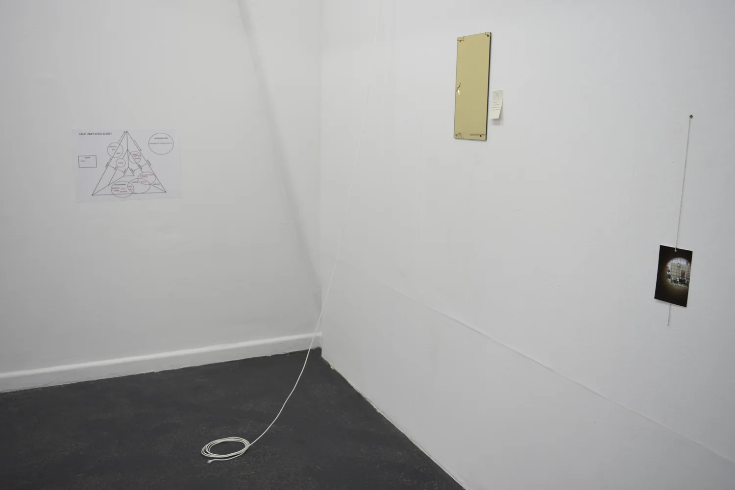 IMAGES | EMMA BERRY, Tender Solidarity, a relentless seam, 2018, paper, washi tape. | VIVA HALL, Hum says otherwise, 2018, rice paper, steel. | LIV MORIARTY, A Splinter in a wall, 2018, found debris, wall. | EMMA BERRY, VIVA HALL, LIV MORIARTY, Scent amplifies heat BLINDSIDE Summer Studio | Courtesy the artists.